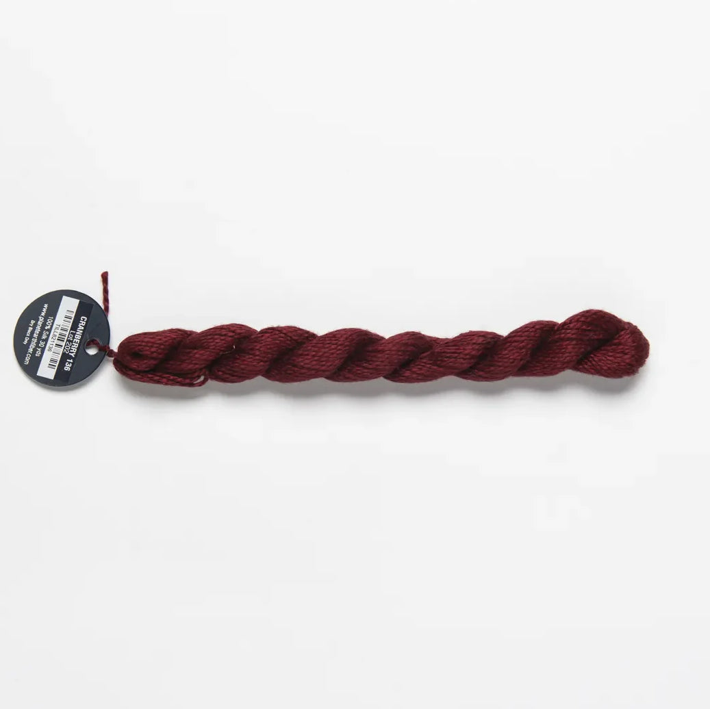 This is Silk from Planet Earth in color 136 Cranberry. Rich silks perfect for 13 mesh, no stranding required. 1 ply on 13 mesh. Colors match Planet Earth Ply Silk.