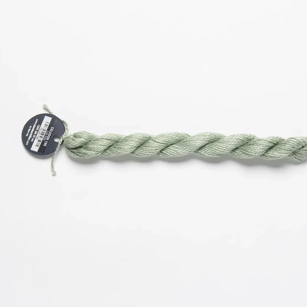 This is Silk from Planet Earth in color 199 Celedon. Rich silks perfect for 13 mesh, no stranding required. 1 ply on 13 mesh. Colors match Planet Earth Ply Silk.