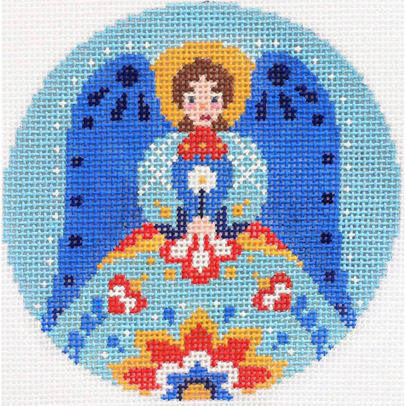 This hand painted needlepoint canvas by Abigail Cecile for PLD Designs features a lovely angel in a Norwegian folk art style.
