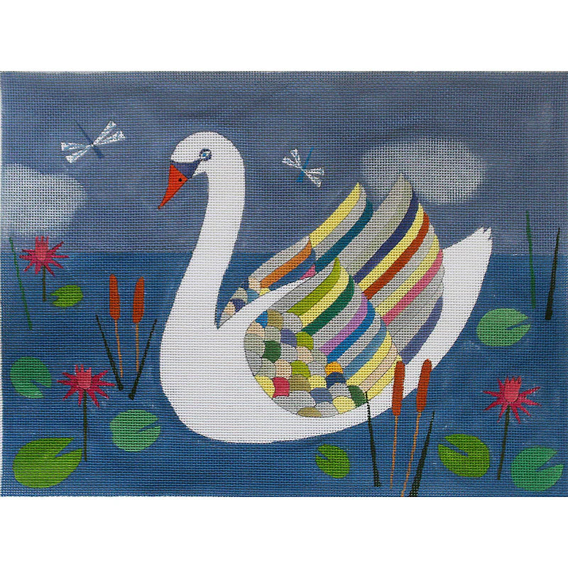 This hand painted needlepoint canvas by Melanie Mikecz for PLD Designs features a lovely swan with lily pads.