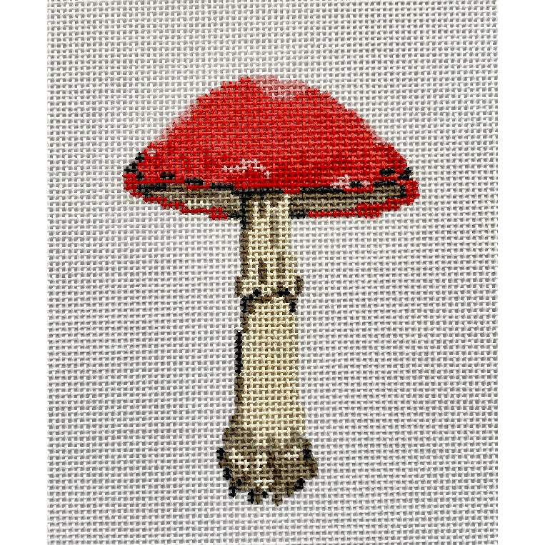 From Lia Burke Libaire for Plum Stitchery, this hand painted needlepoint canvas features a classic toadstool style mushroom with a red cap. Lia Burke Libaire's signature style is comprised of colorful watercolors bordered by thin ink lines which they apply to botanicals, mushrooms, sea life, and more.