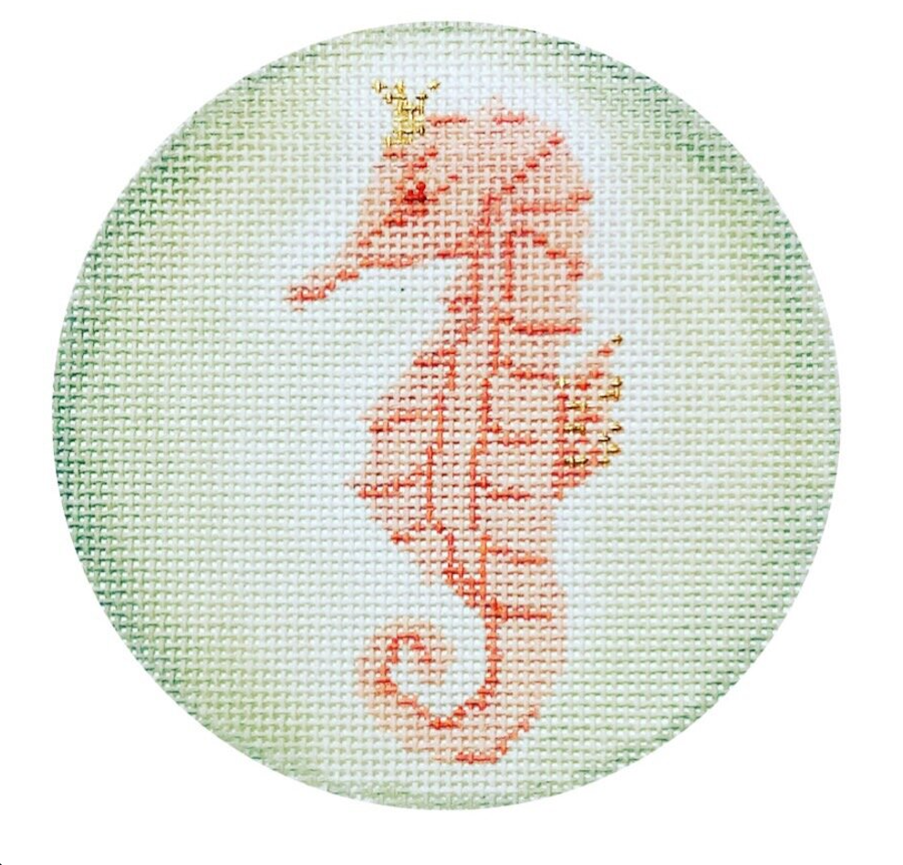 From the Seaside Series by Plum Stitchery, this hand painted needlepoint canvas features a wonderful pink seahorse.