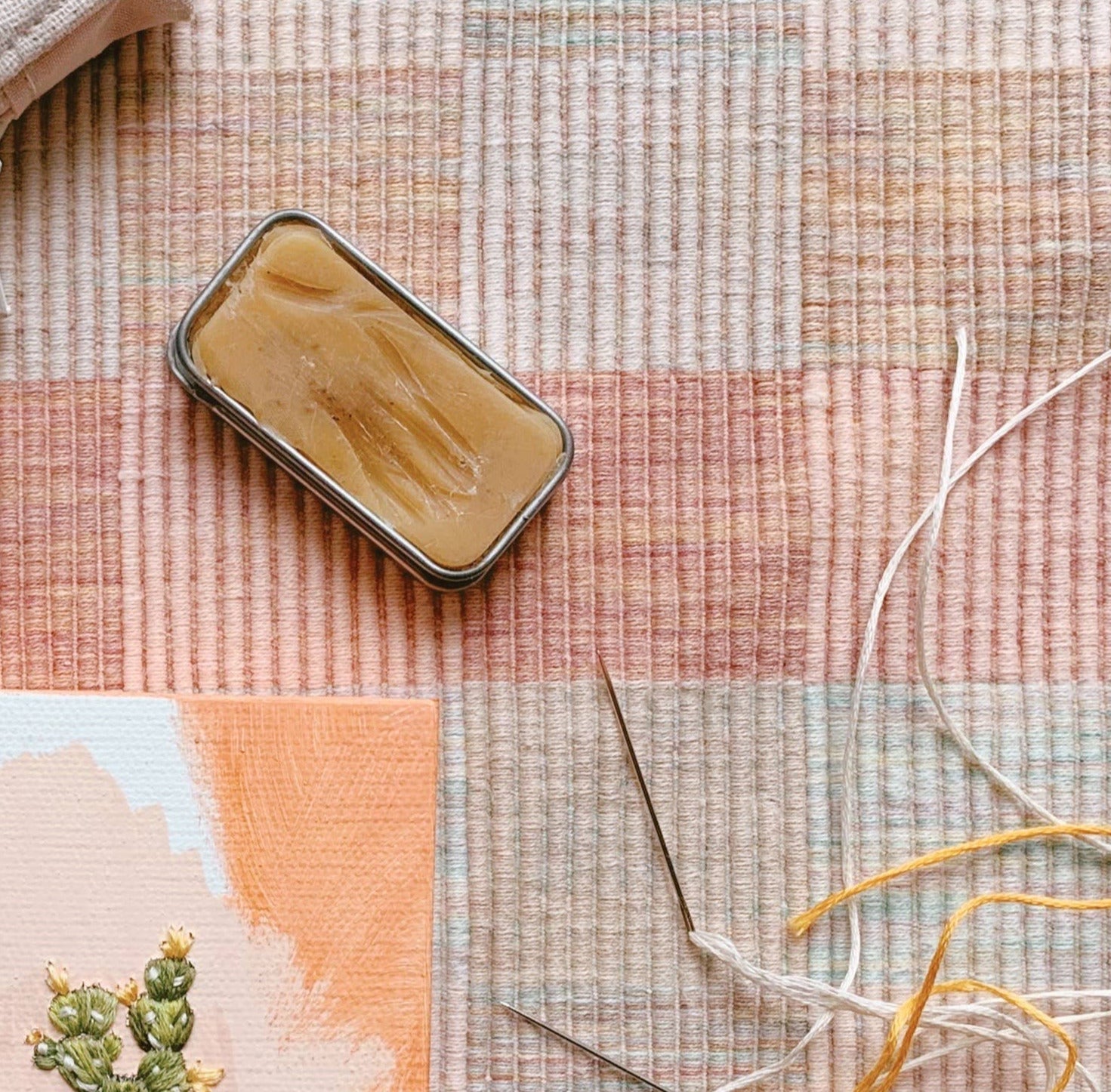 This thread gloss from Ponderosa Creative is a specially formulated wax and oil blend that coats your thread to prevent tangles, fraying, and brittleness. Think of it as a deep conditioner for your thread and embroidery floss. Have you ever had to cut your thread short in the middle of your groove because there was a gnarly knot? Using thread gloss helps prevent tangles and knots, taking away all of the frustration of handwork. It can be used for any craft where you're dealing with cotton thread-- hand embroidery, hand quilting, cross-stitch, english paper piecing, applique, repairing clothes, whatever. Simply drag your thread across the gloss pot after threading your needle, applying slight pressure on the thread with your thumb, while pulling with your other hand.
