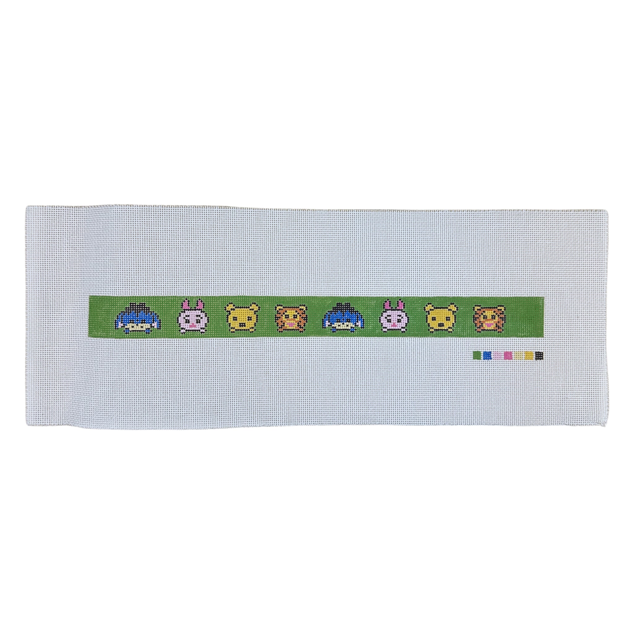 This hand painted needlepoint dog collar canvas features Pooh and friends.