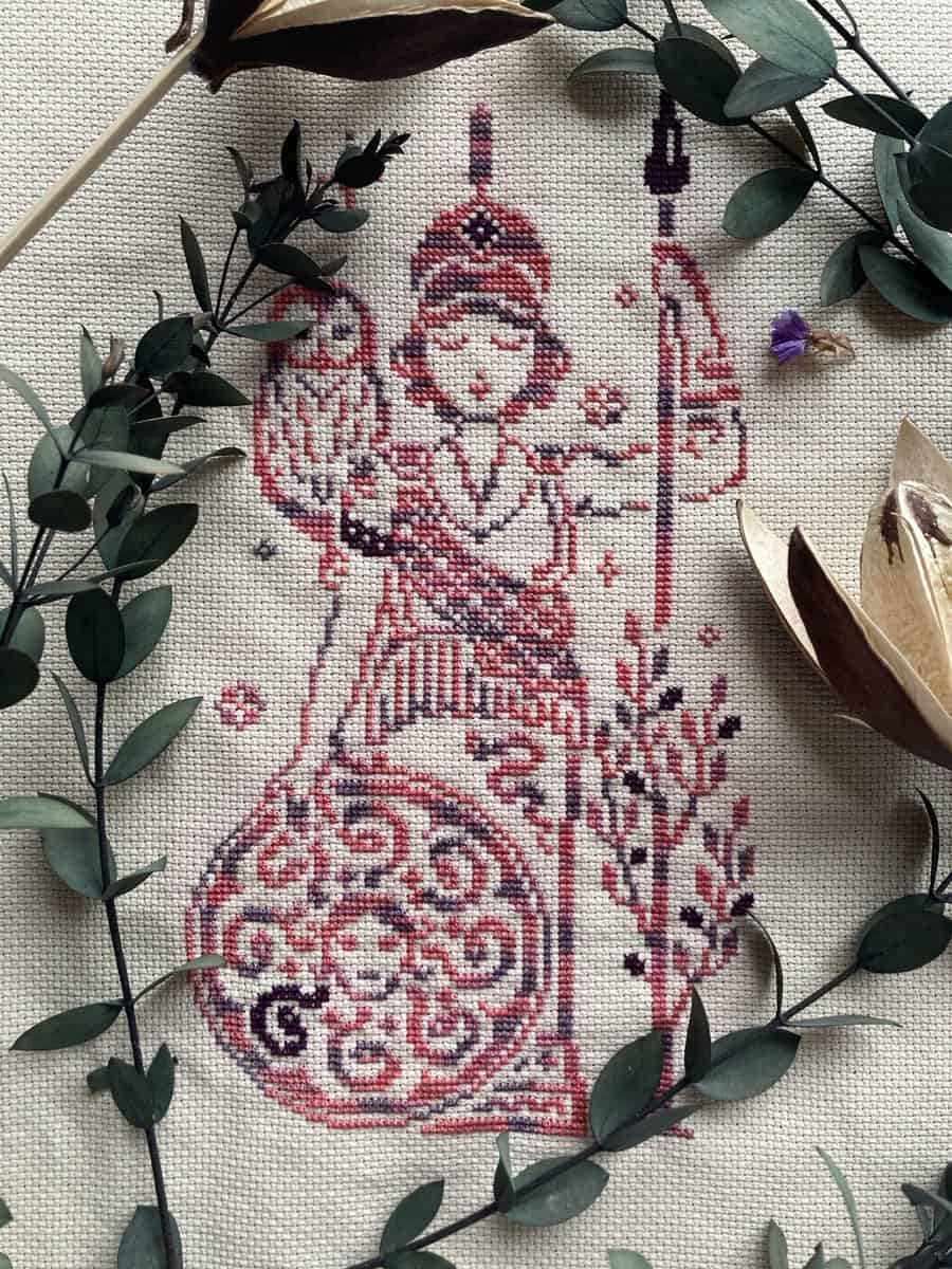 This printed cross stitch pattern by Quaternion Creations features Athena, the Greek goddess of wisdom, strategy, civilization, and crafts. She is often depicted as having an owl, or being an owl herself; and is one of the most powerful deities in the ancient Greek pantheon, compared only to her father Zeus himself. This cross stitch design of Athena is inspired by Greek myths and ancient statues. As stitched, this pattern uses Sulky Petites - DMC conversions included.