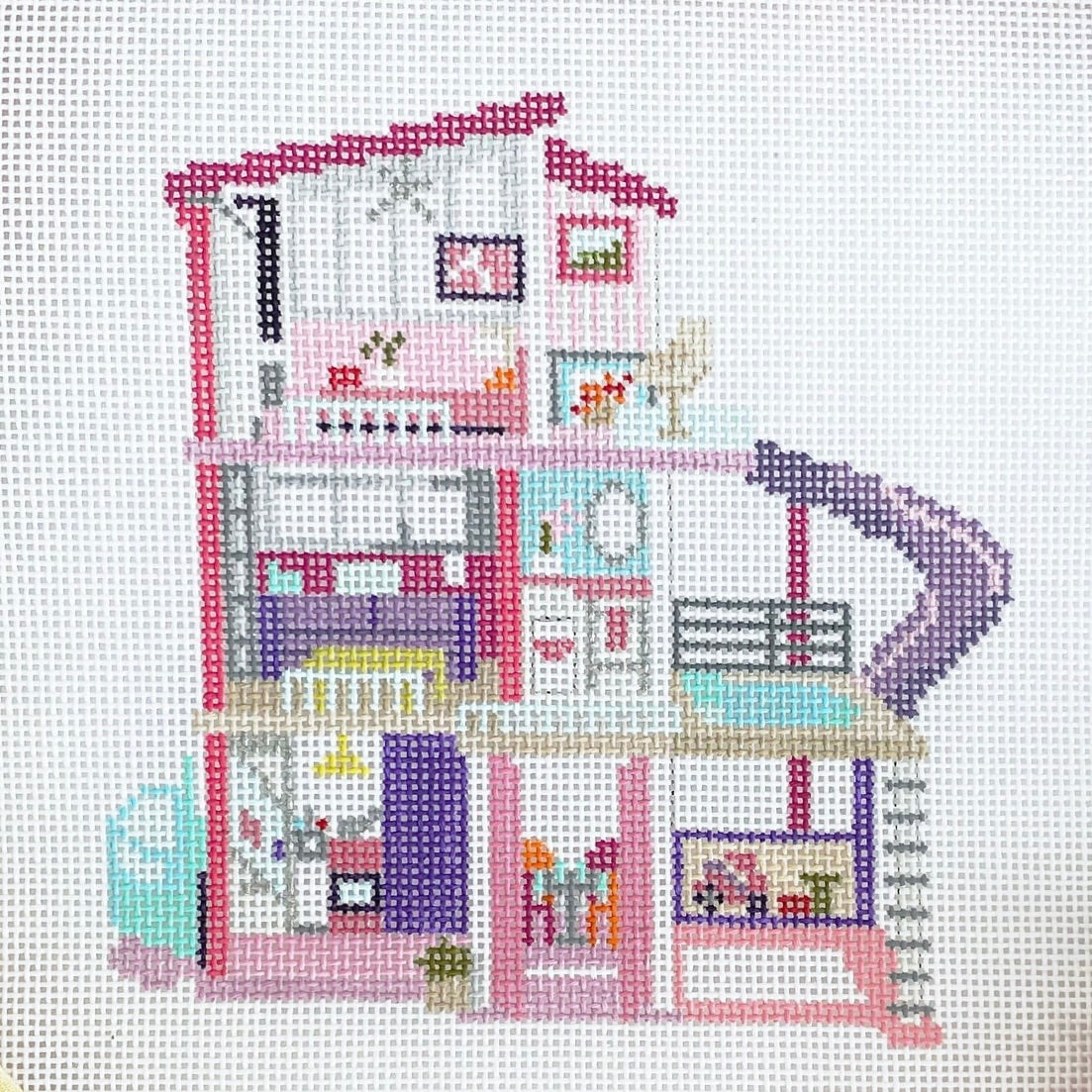 This is a hand painted needlepoint canvas by Rachel Barri.