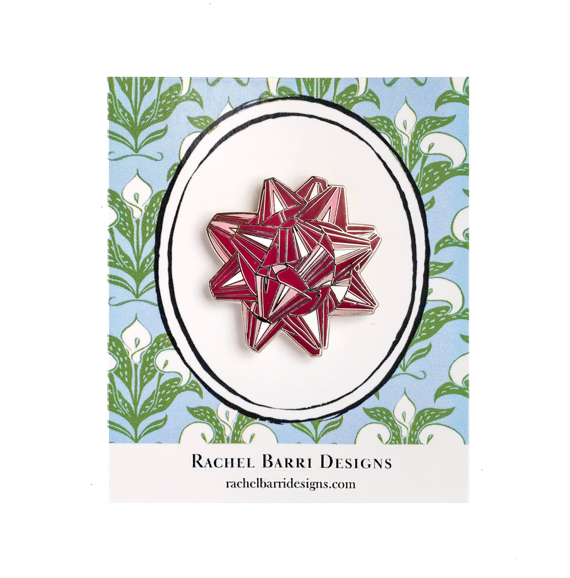 This is a magnetic needle minder by Rachel Barri, made with a super strong Neodymium magnet. It features a red bow, which is meant to celebrate the holiday season.