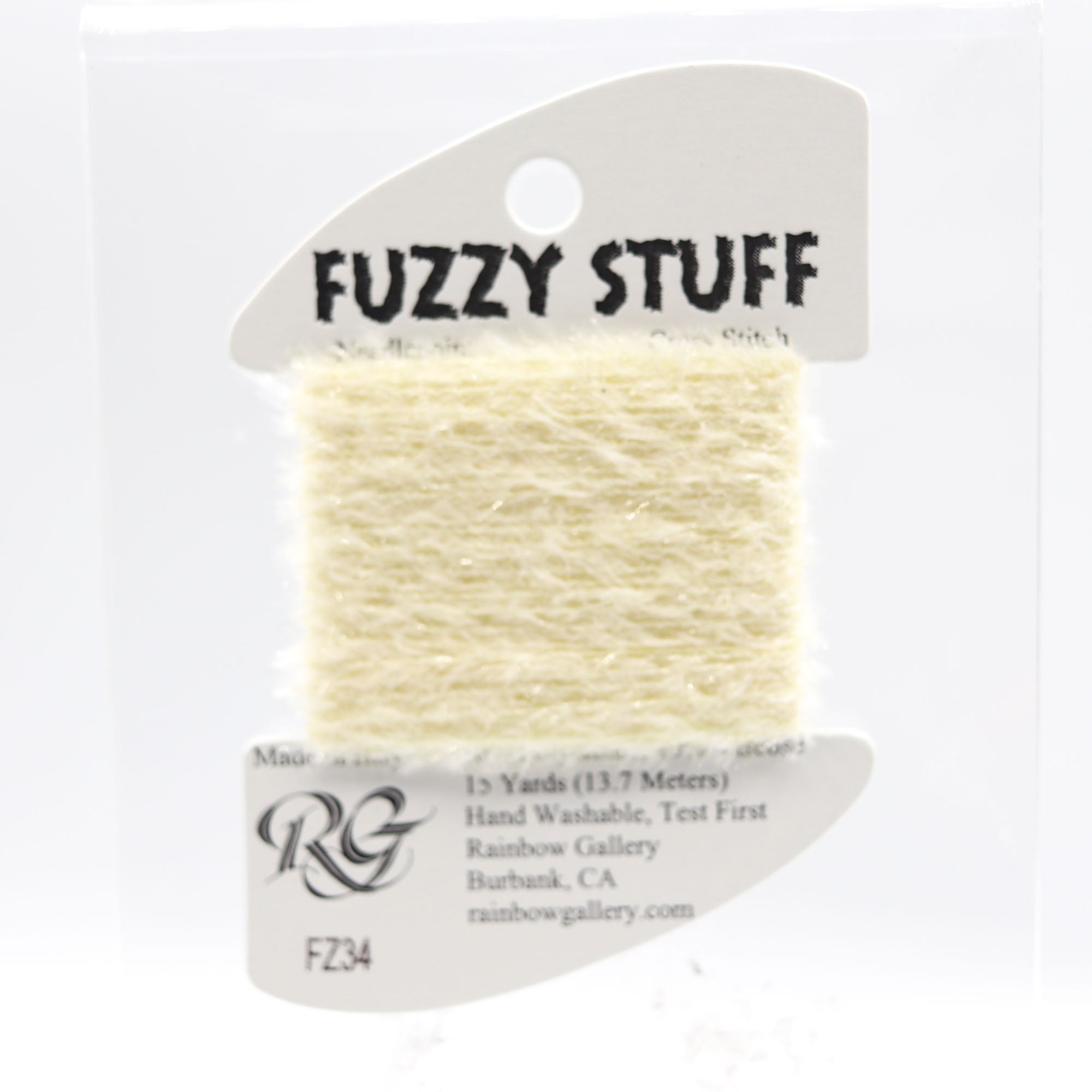 This is Fuzzy Stuff from Rainbow Gallery in color 34 Pale Yellow. A fuzzy thread with gentle sparkle, perfect for beards and fur. 2 ply on 13 mesh, 1 ply on 18 mesh.