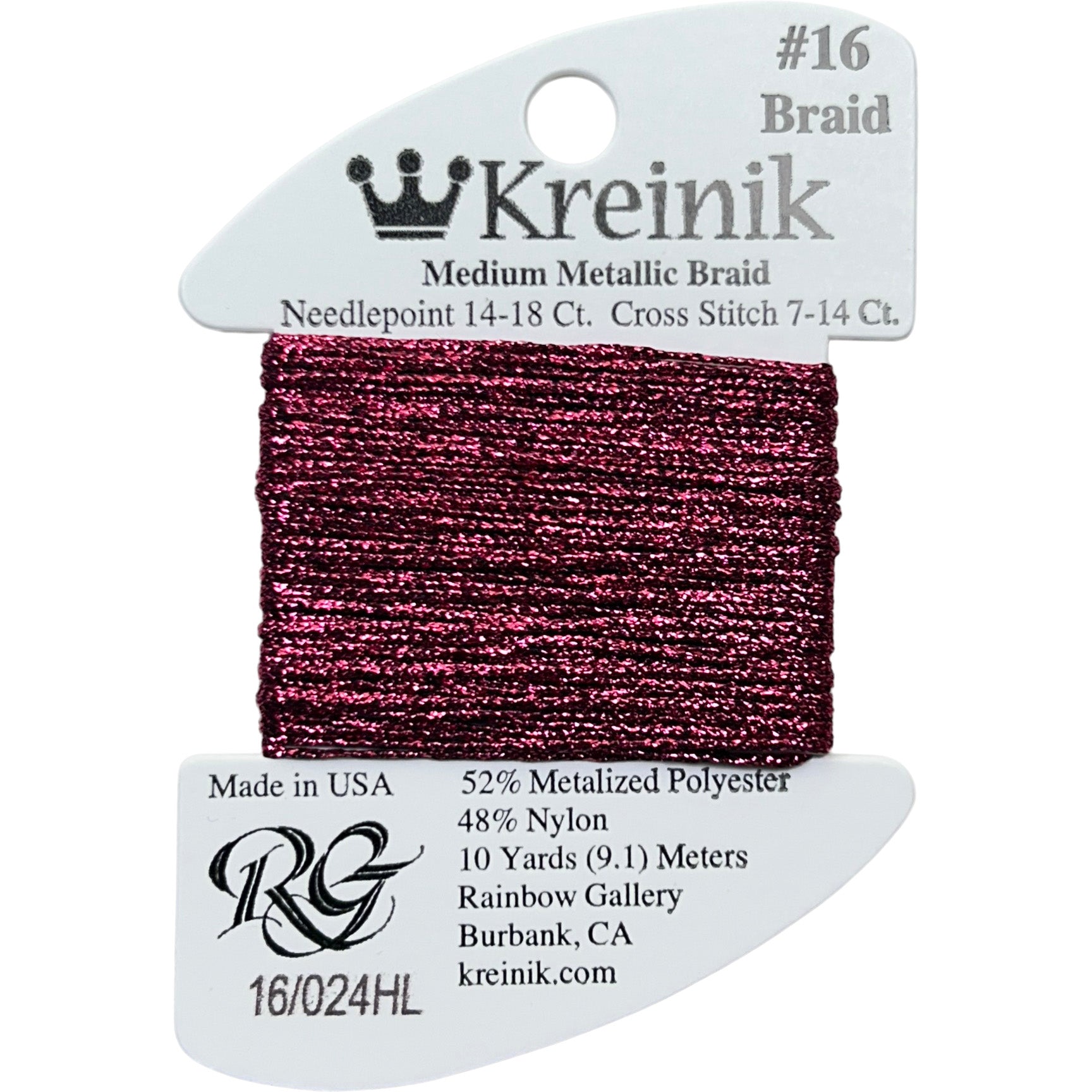 Rainbow Gallery Kreinik Medium Braid #16 - 0024HL Fuchsia High Lustre