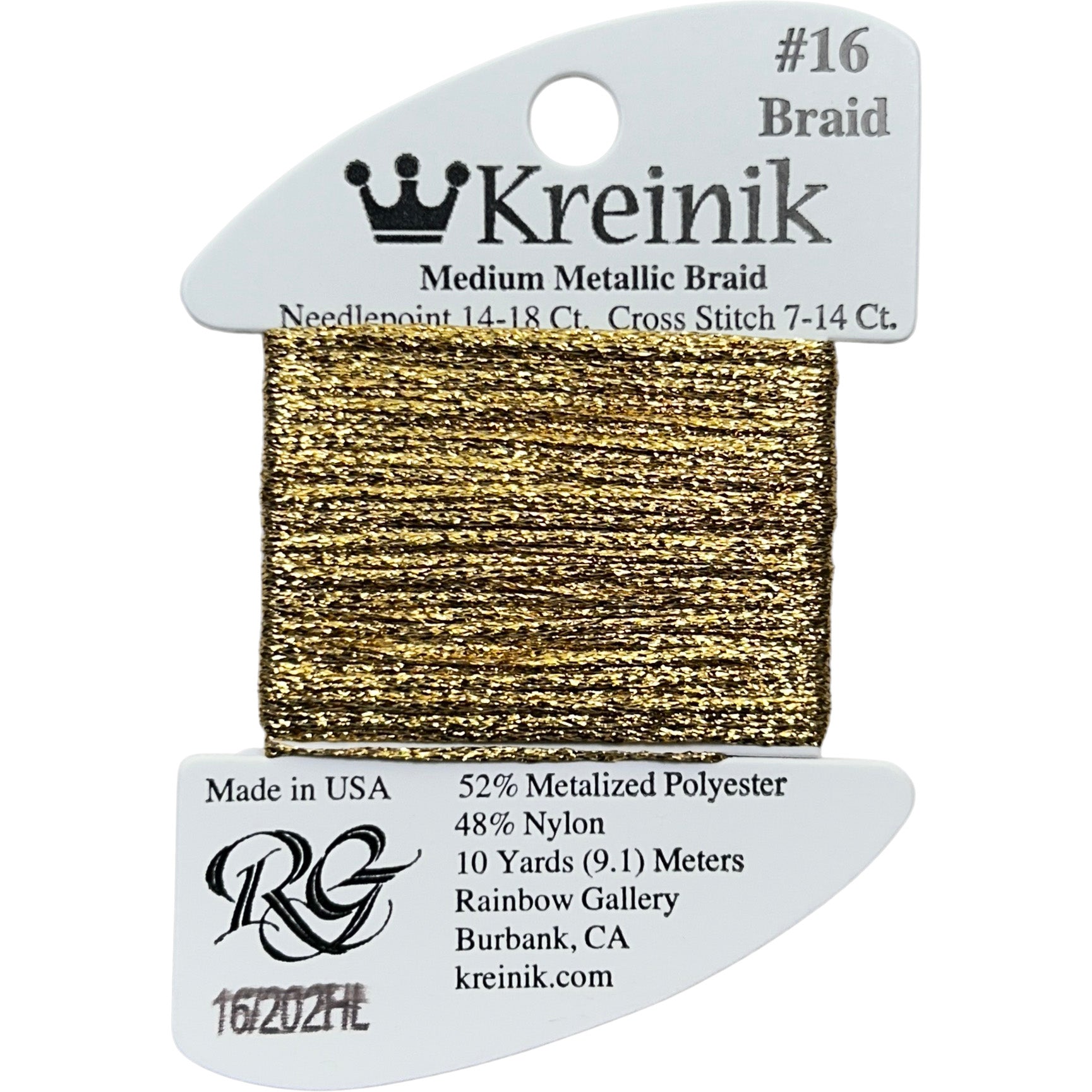 Rainbow Gallery Kreinik Medium Braid #16 - 0202HL Aztec Gold High Lustre