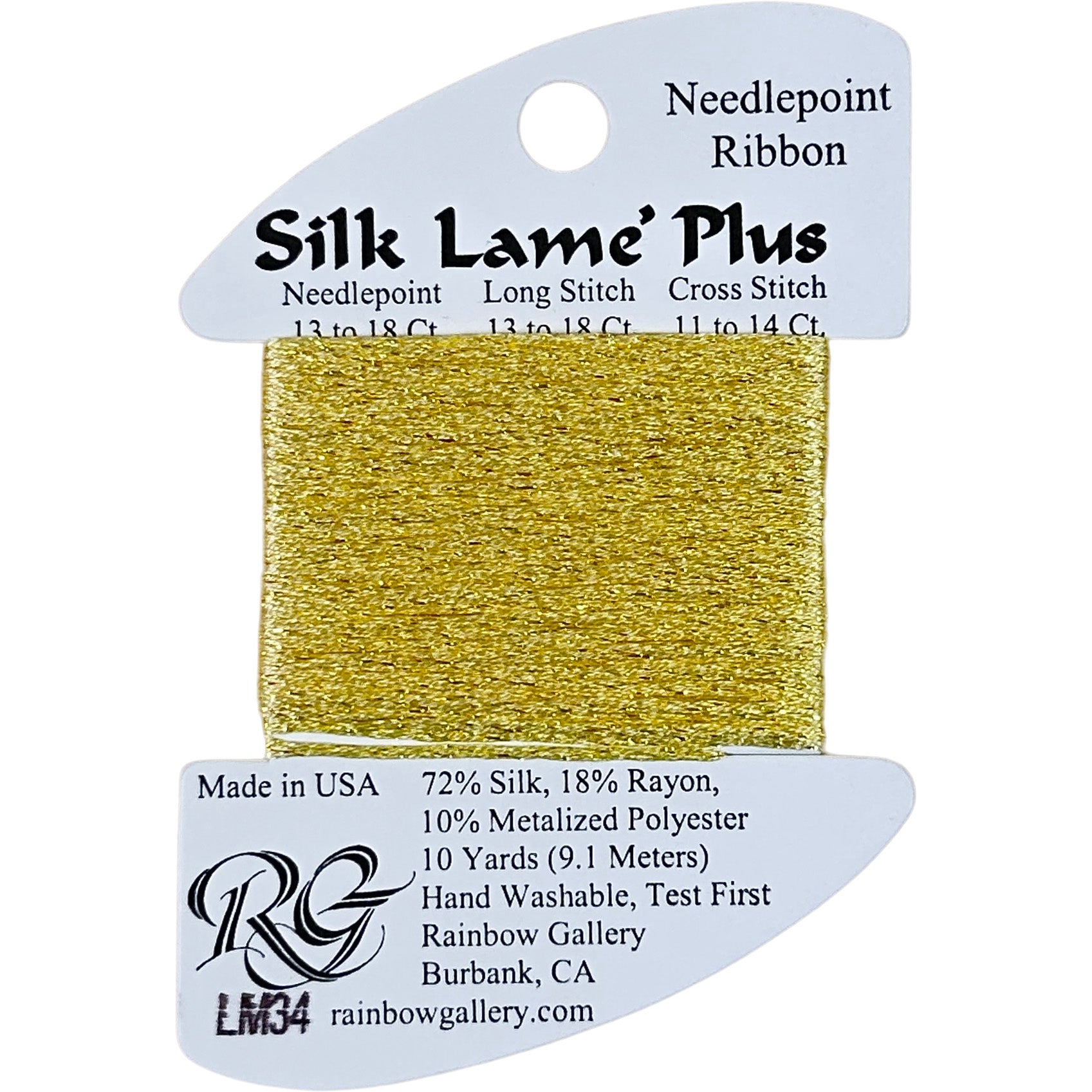 This is Silk Lame Plus from Rainbow Gallery in color 34 Lemon. Use as-is on 13 or 18 mesh. Comparable to Neon Rays Plus, but made with silk instead of rayon.