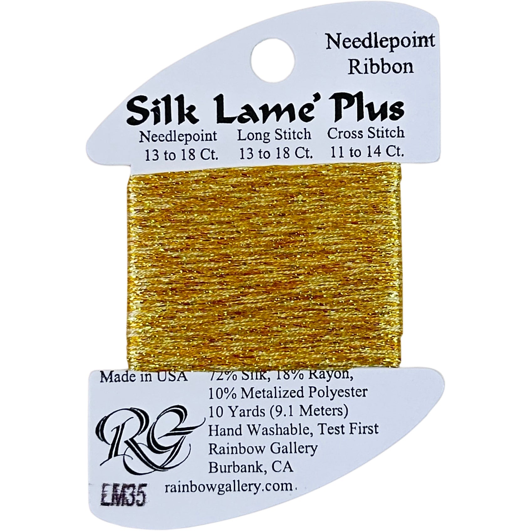 This is Silk Lame Plus from Rainbow Gallery in color 35 Buttercup. Use as-is on 13 or 18 mesh. Comparable to Neon Rays Plus, but made with silk instead of rayon.