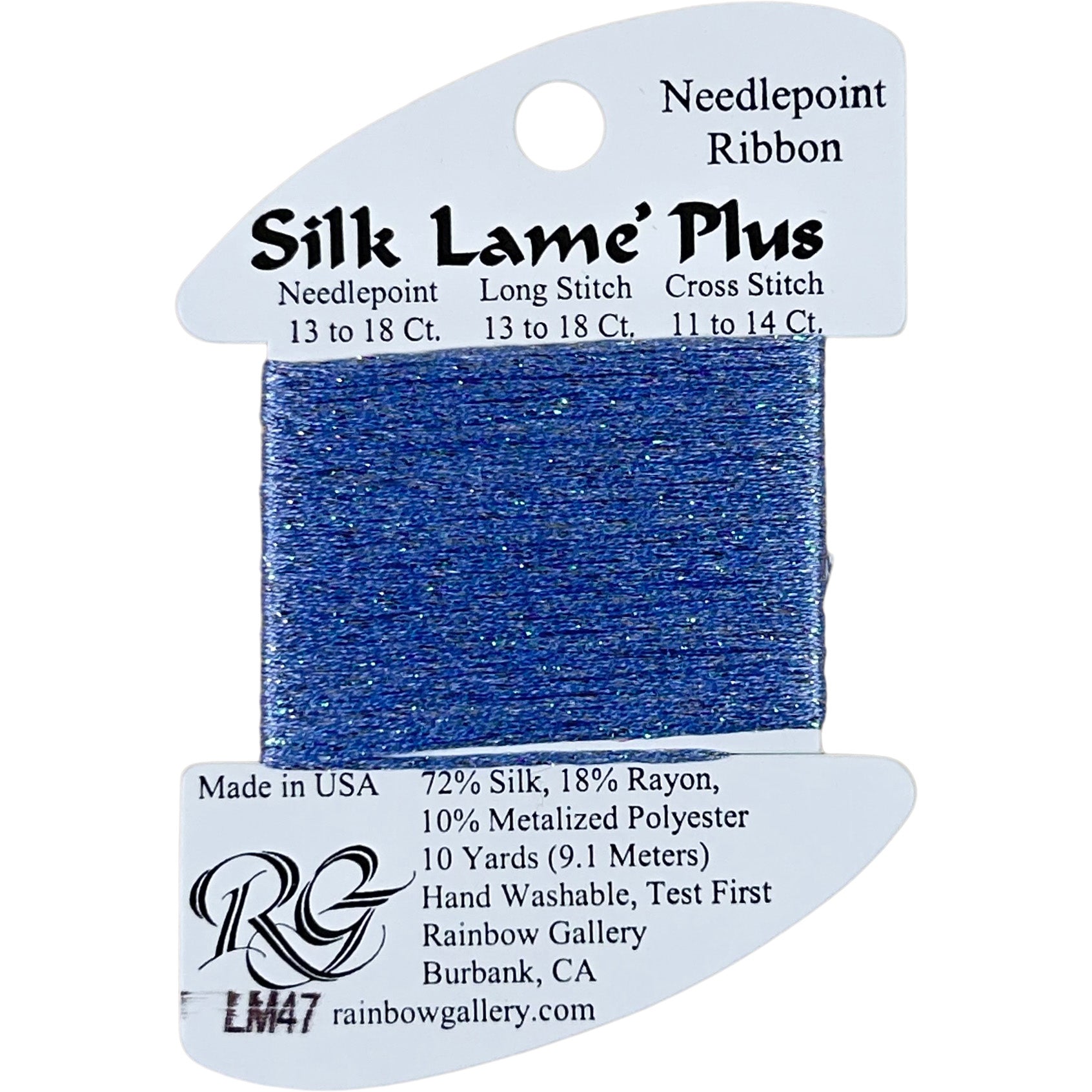 This is Silk Lame Plus from Rainbow Gallery in color 47 Lavender Blue. Use as-is on 13 or 18 mesh. Comparable to Neon Rays Plus, but made with silk instead of rayon.