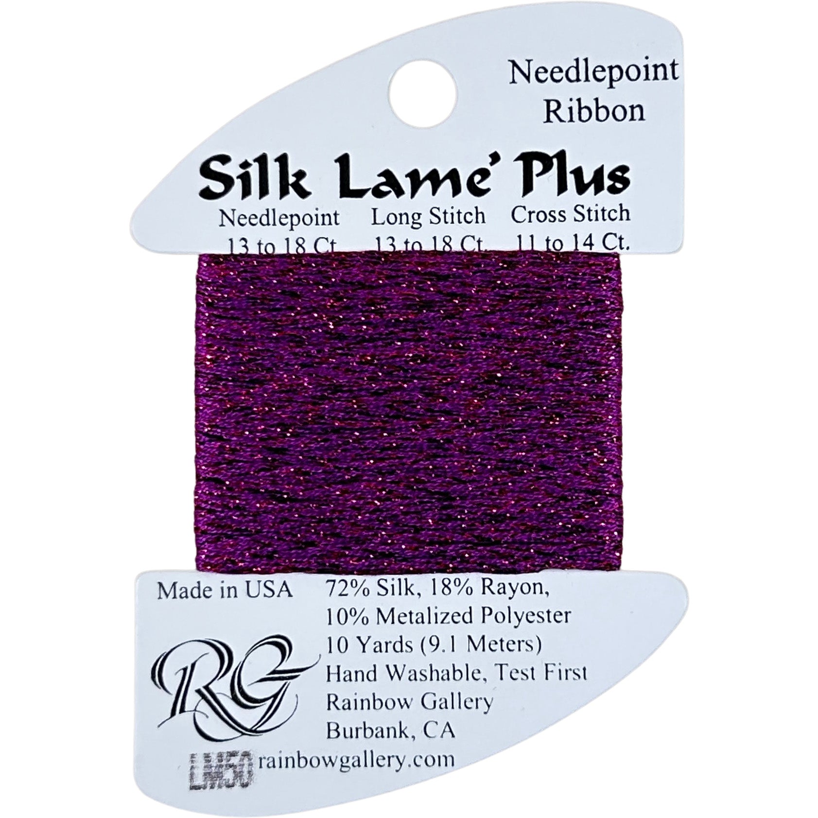 This is Silk Lame Plus from Rainbow Gallery in color 50 Fuchsia. Use as-is on 13 or 18 mesh. Comparable to Neon Rays Plus, but made with silk instead of rayon.
