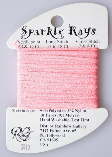 This is Sparkle Rays from Rainbow Gallery in color 10 Watermelon. Use as-is on 13 mesh. This line features several vivid neons, perfect for brightening up your projects!