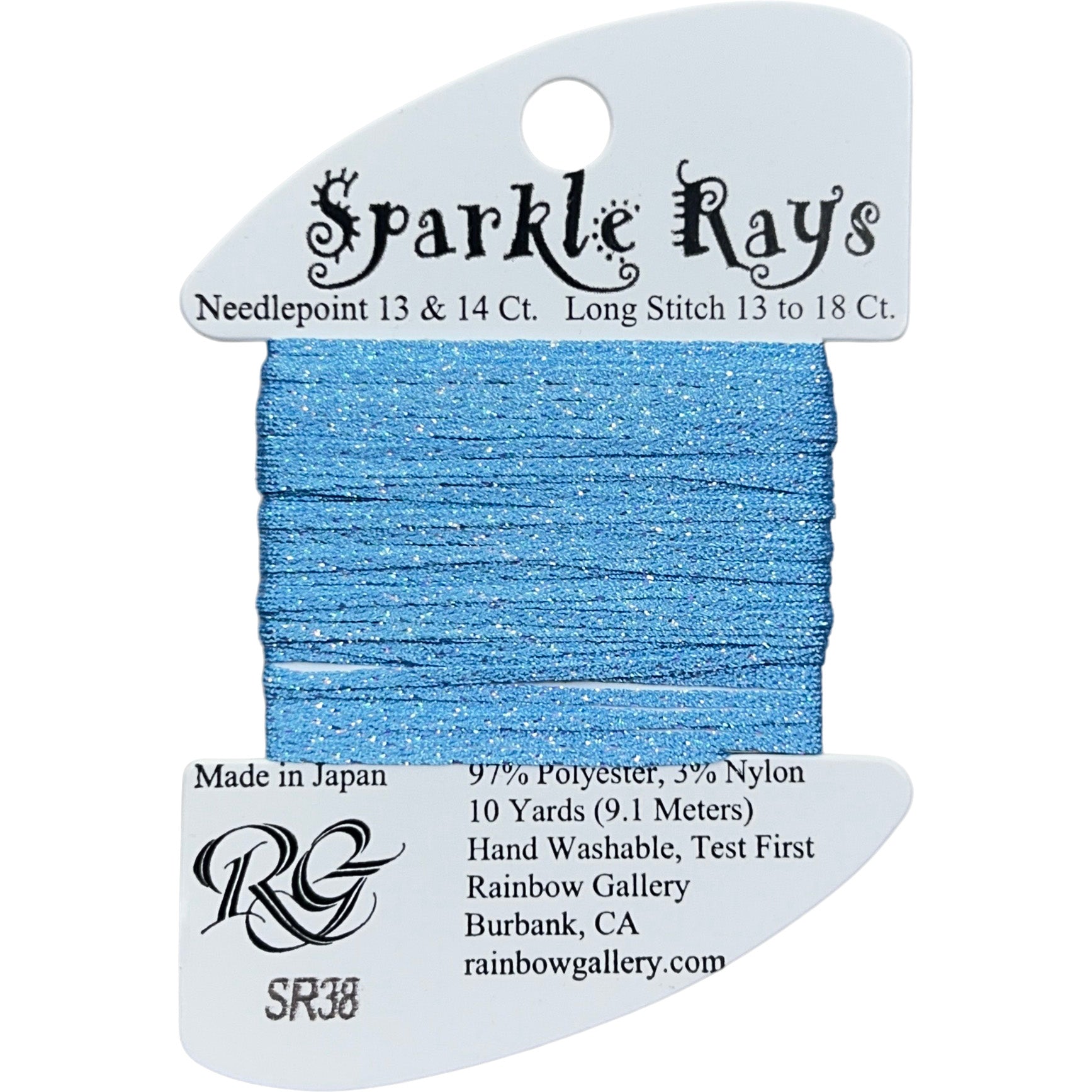 This is Sparkle Rays from Rainbow Gallery in color 38 Light Cornflower. Use as-is on 13 mesh. This line features several vivid neons, perfect for brightening up your projects!
