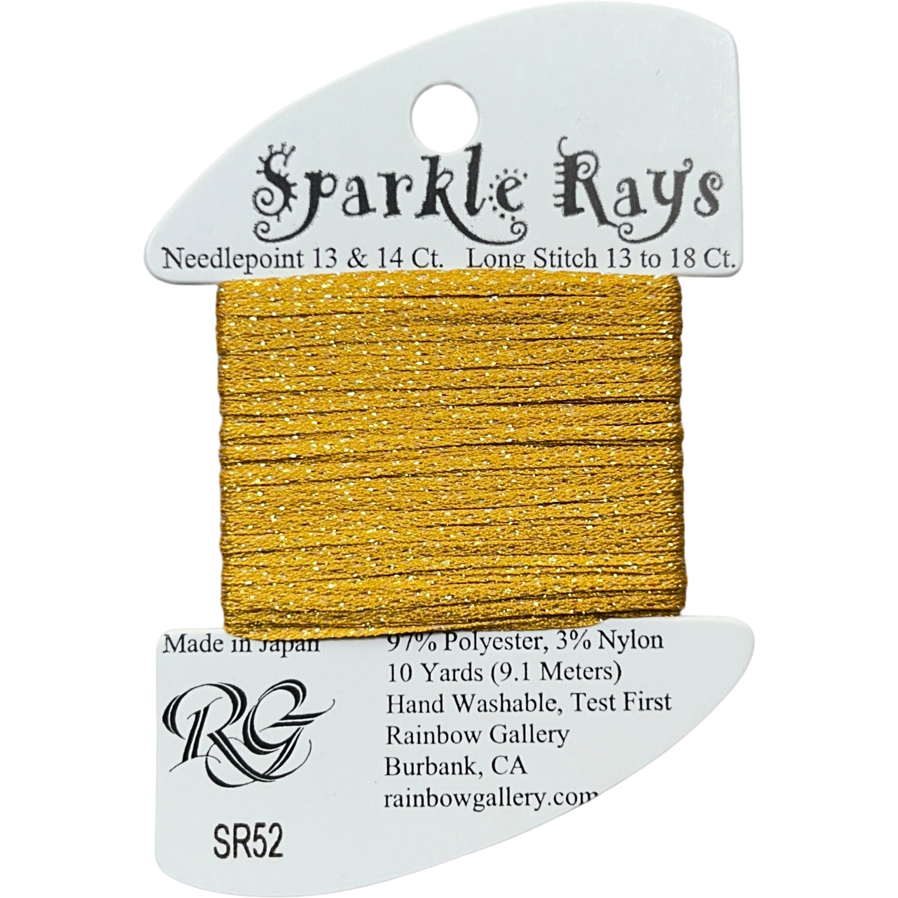 This is Sparkle Rays from Rainbow Gallery in color 52 Marigold. Use as-is on 13 mesh. This line features several vivid neons, perfect for brightening up your projects!