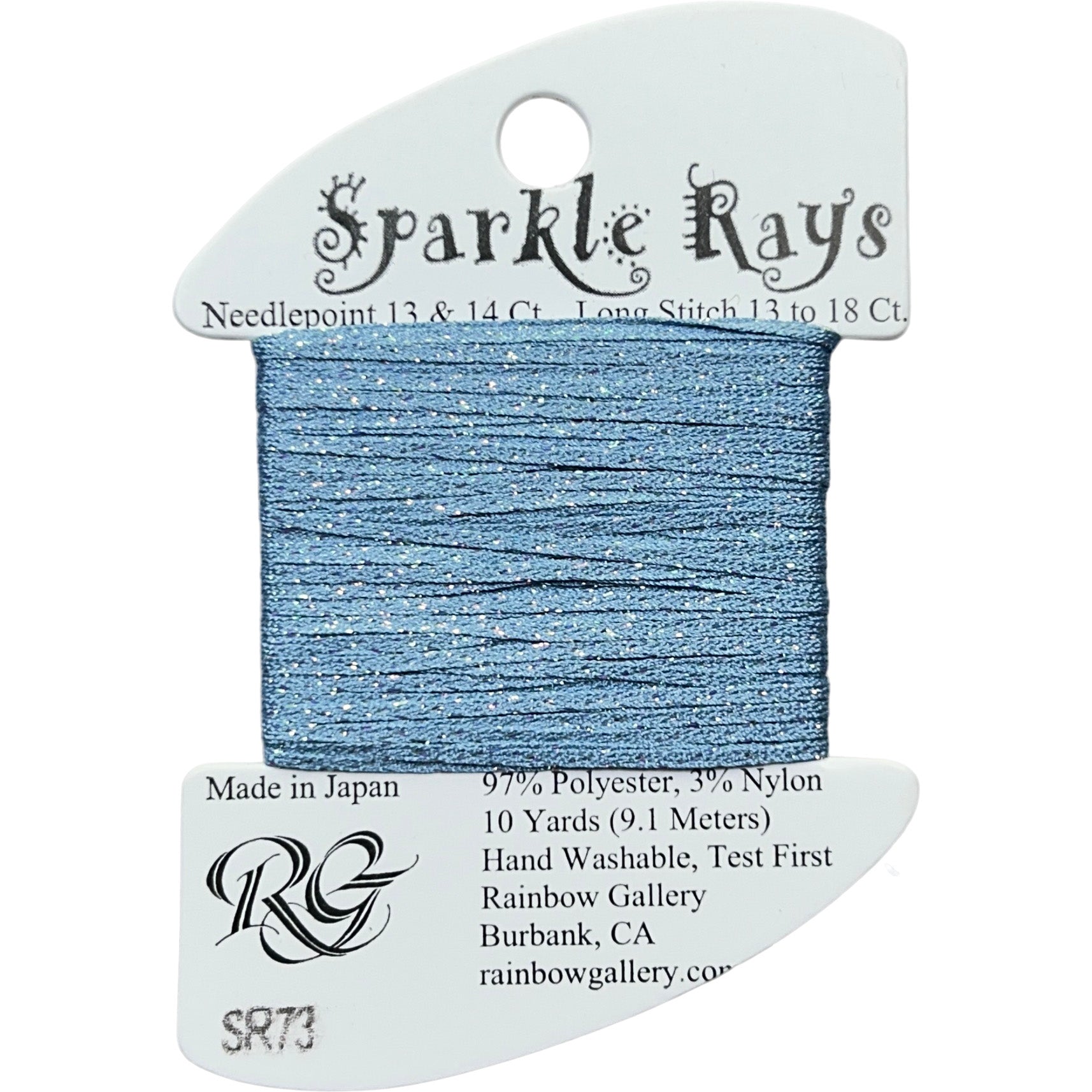 This is Sparkle Rays from Rainbow Gallery in color 73 Medium Colonial Blue. Use as-is on 13 mesh. This line features several vivid neons, perfect for brightening up your projects!