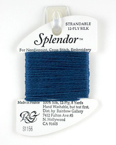 This is Splendor from Rainbow Gallery in color 1156 Antique Wedgwood. A soft stranded silk from Rainbow Gallery. Use 6 strands on 13 mesh, 3 or 4 strands on 18 mesh.