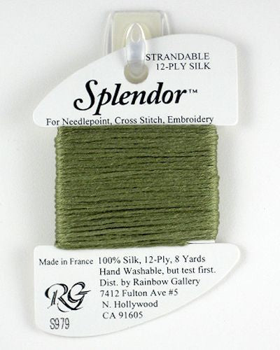 This is Splendor from Rainbow Gallery in color 0979 Cedar. A soft stranded silk from Rainbow Gallery. Use 6 strands on 13 mesh, 3 or 4 strands on 18 mesh.