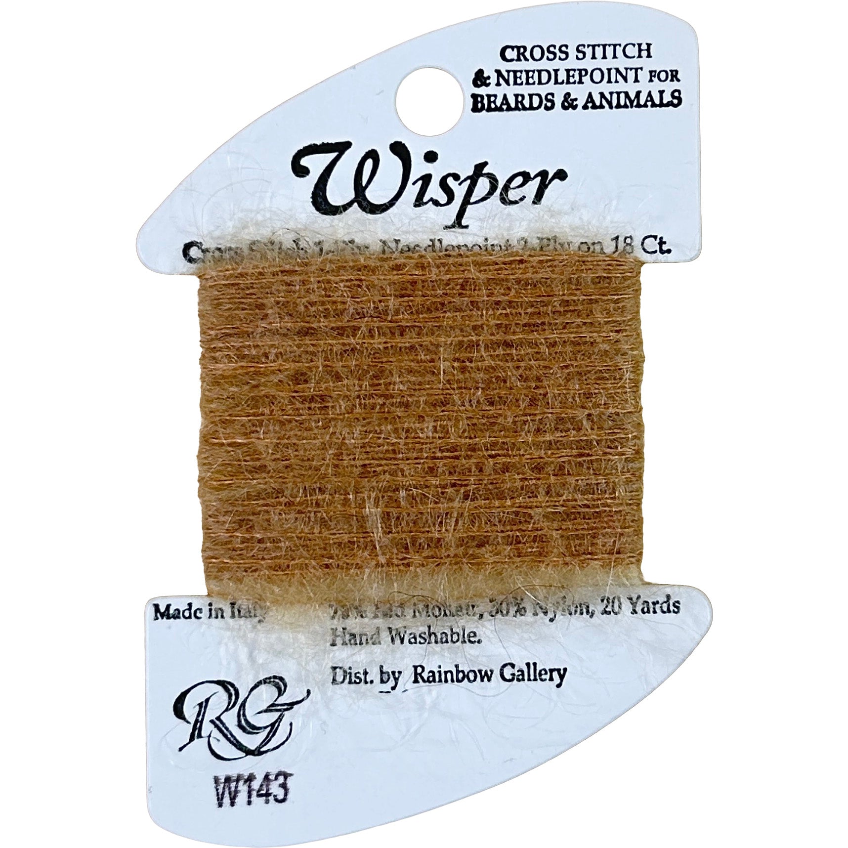 This is Wisper from Rainbow Gallery in color 143 Koala. Great for animals and beards! 4 ply on 13 mesh, 2 ply on 18 mesh.