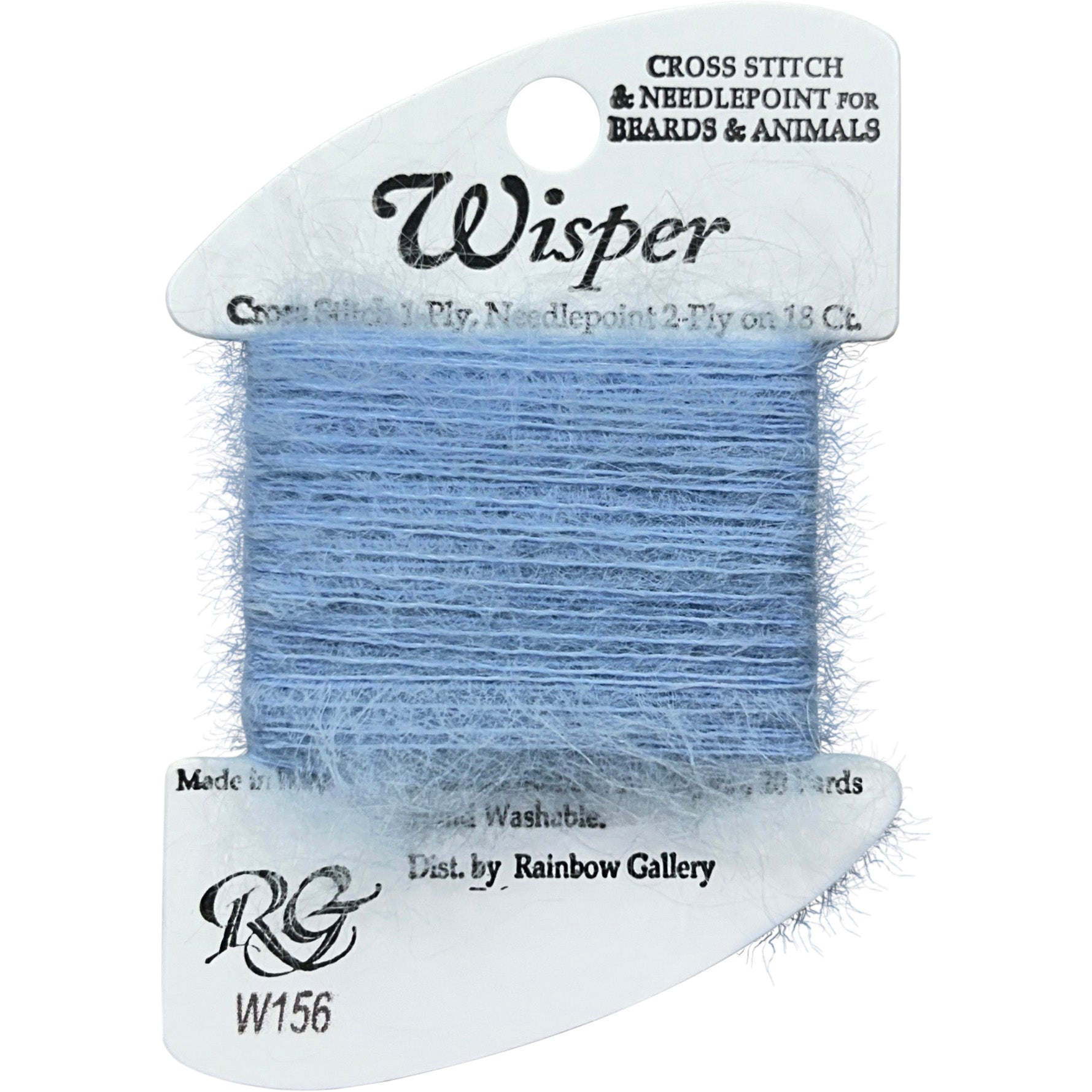 This is Wisper from Rainbow Gallery in color 156 Sky Blue. Great for animals and beards! 4 ply on 13 mesh, 2 ply on 18 mesh.