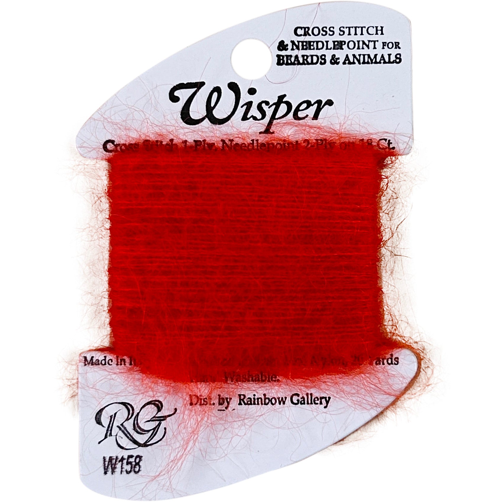 This is Wisper from Rainbow Gallery in color 158 Orange Crush. Great for animals and beards! 4 ply on 13 mesh, 2 ply on 18 mesh.