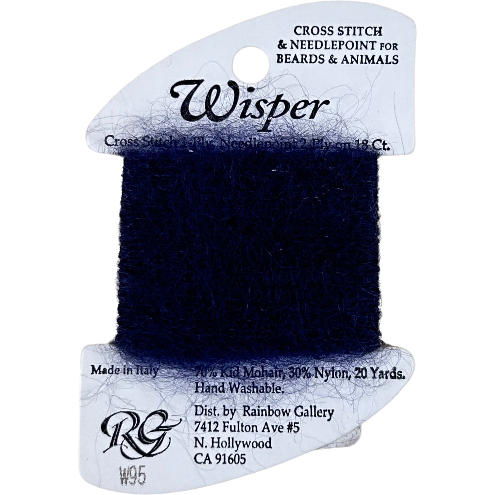 This is Wisper from Rainbow Gallery in color 095 Navy Blue. Great for animals and beards! 4 ply on 13 mesh, 2 ply on 18 mesh.