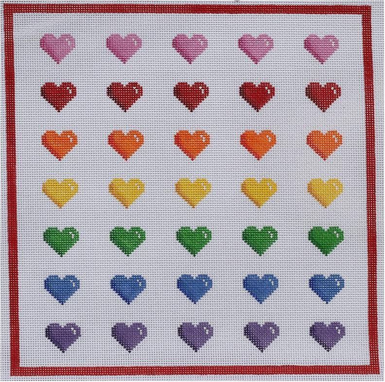 Kate Dickerson Needlepoint Collections Rainbow Rows of Hearts Needlepoint Canvas