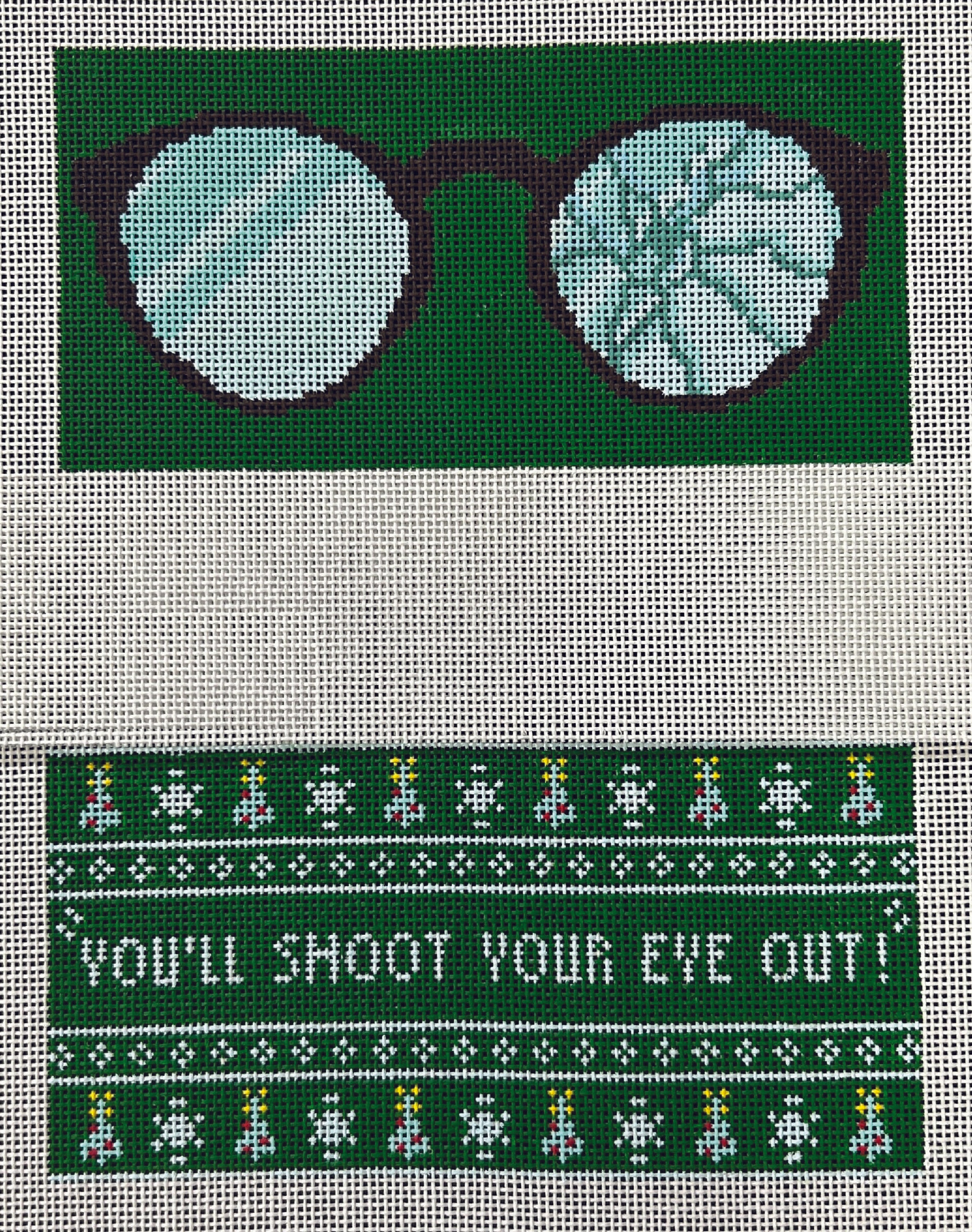This hand painted needlepoint canvas by Rittenhouse Needlepoint features a two sided eyeglass case inspired by the beloved Christmas movie.