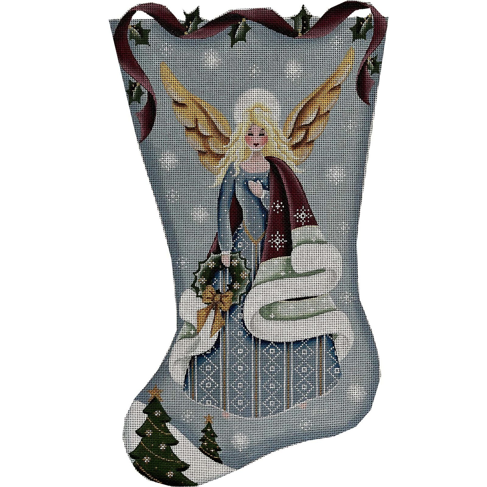 Rebecca Wood Designs Arctic Angel with Wreath Stocking Needlepoint Canvas - 13M