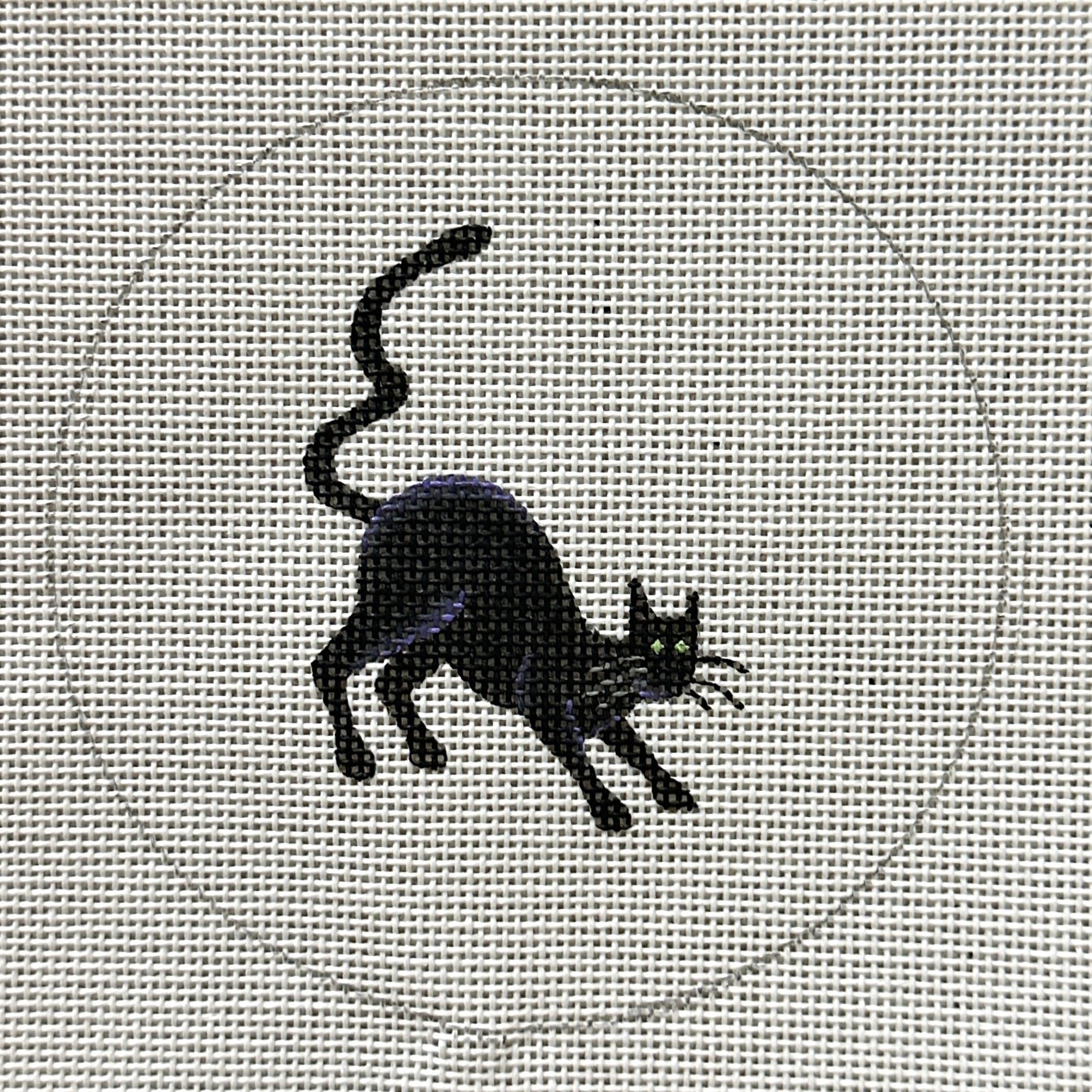 A beautiful hand painted needlepoint design from Rebecca Wood Designs. Adorable spooked Halloween cat.