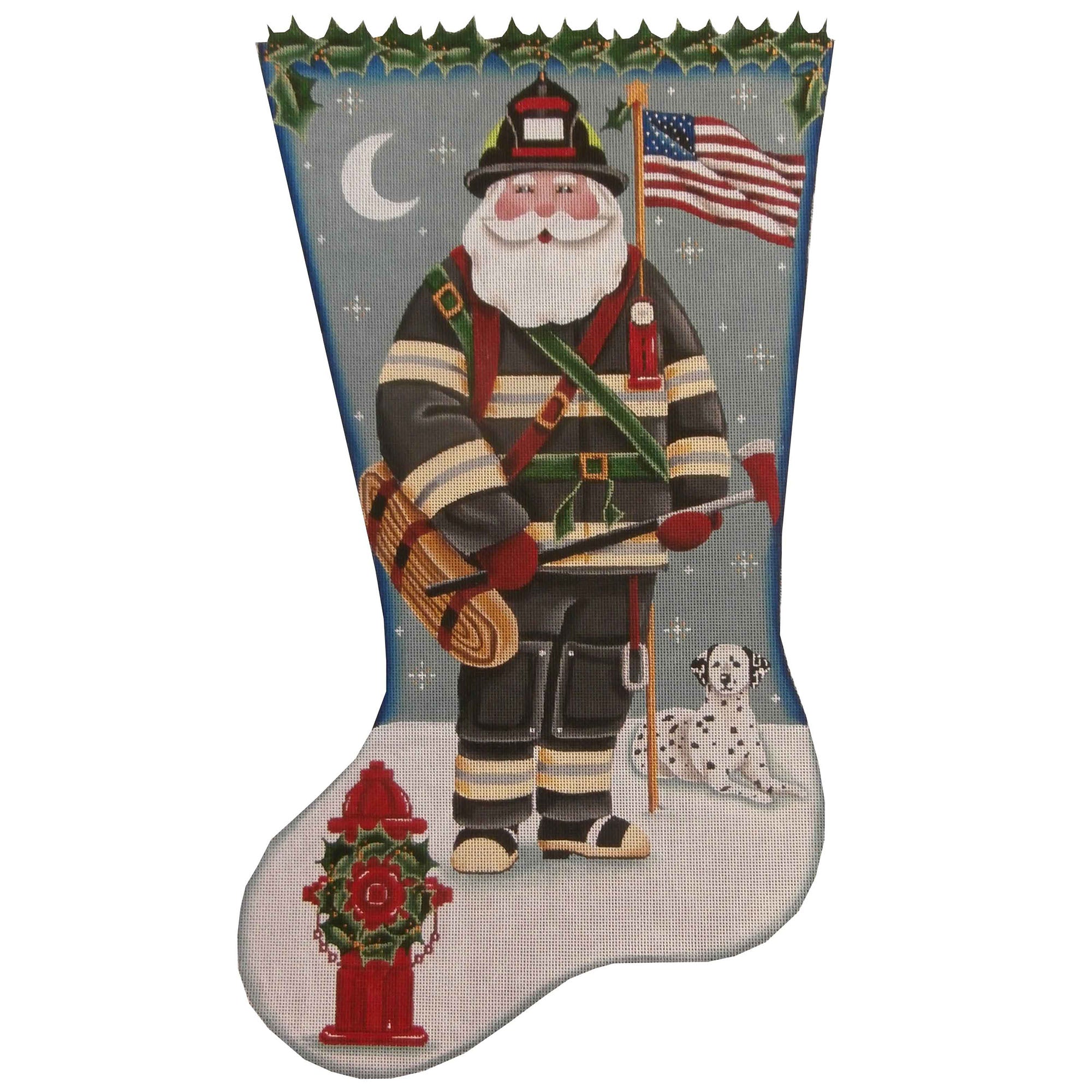 Rebecca Wood Designs Fireman Santa Stocking Needlepoint Canvas - 13M