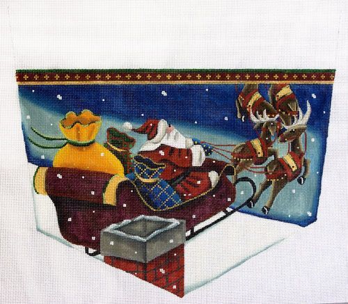 A beautiful hand painted needlepoint design from Rebecca Wood Designs. Christmas stocking topper.