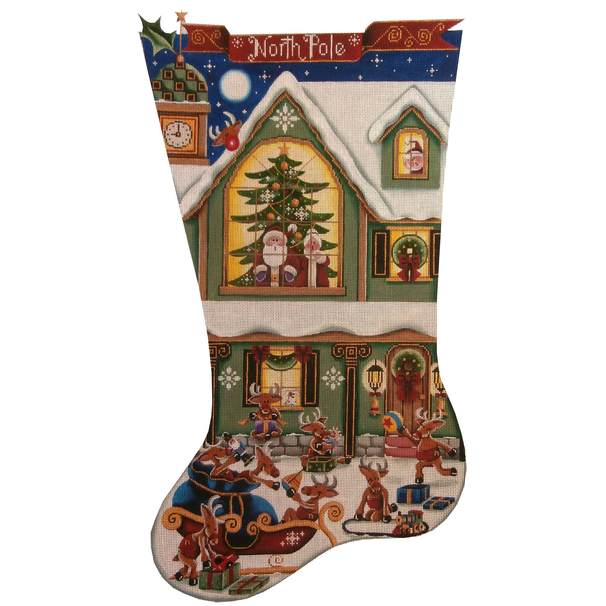 Rebecca Wood Designs Reindeer Games Stocking Needlepoint Canvas - 13M