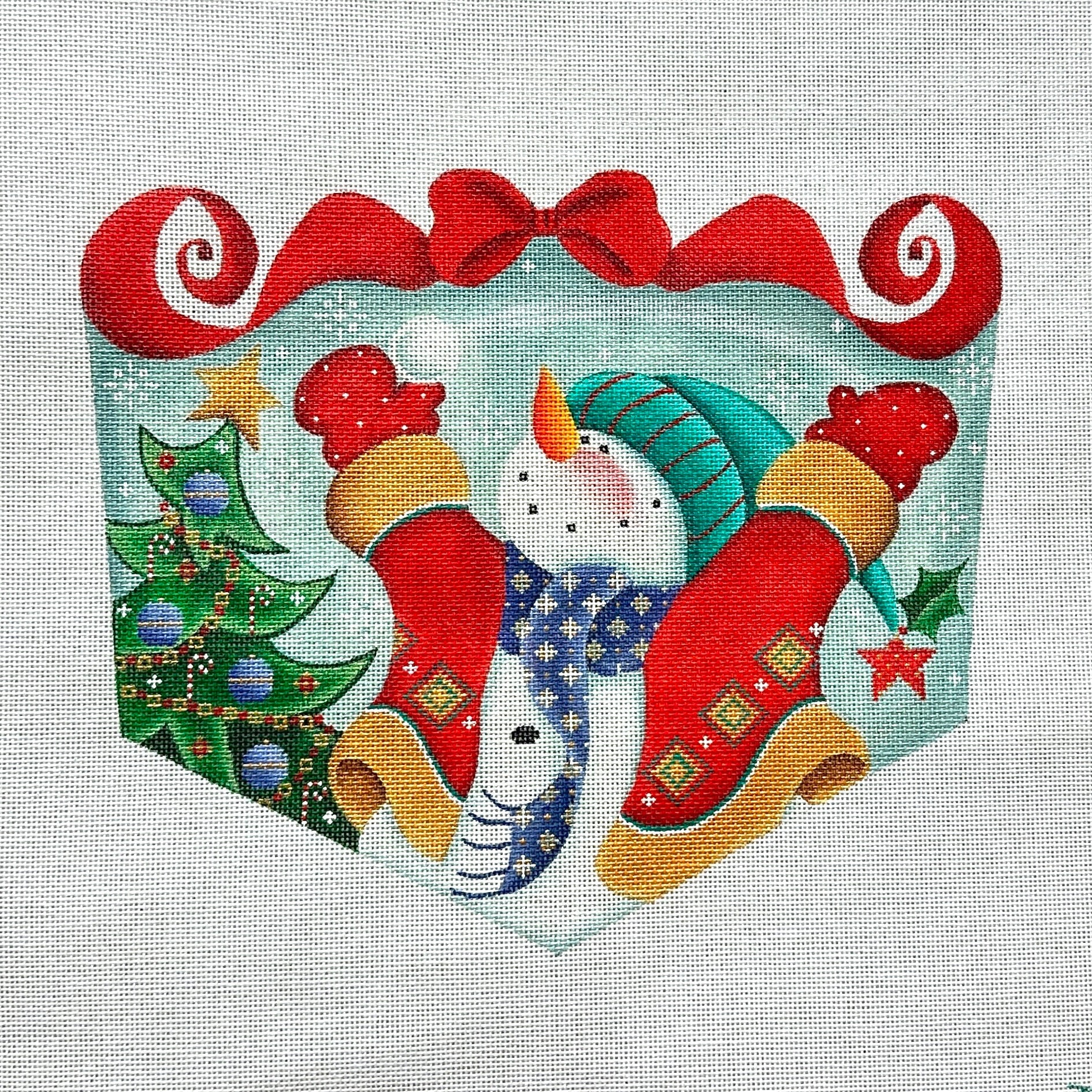 Rebecca Wood Designs Snowman with Tree Stocking Cuff Needlepoint Canvas - 13M