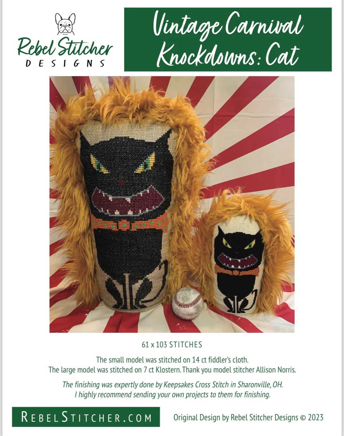 A counted cross stitch chart from Rebel Stitcher Designs. Inspired by vintage carnival game knockdowns.