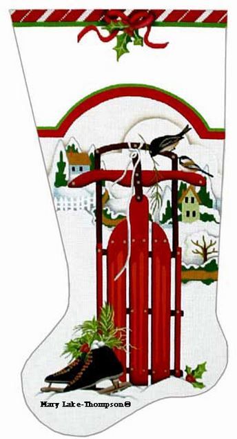 Melissa Shirley Designs Red Sled Stocking Needlepoint Canvas