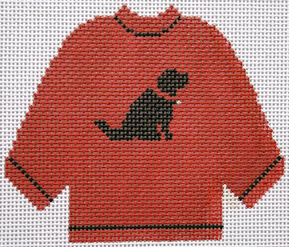 Silver Needle Red Sweater with Black Lab Orn Needlepoint Canvas