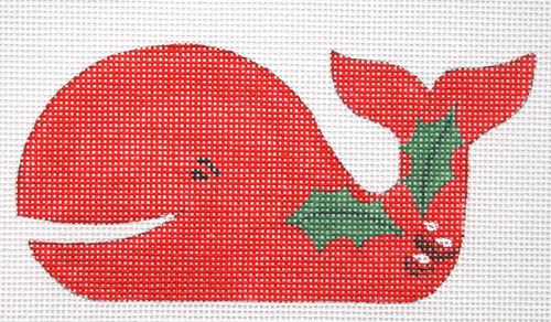 Kate Dickerson Needlepoint Collections Red Whale with Holly Needlepoint Canvas