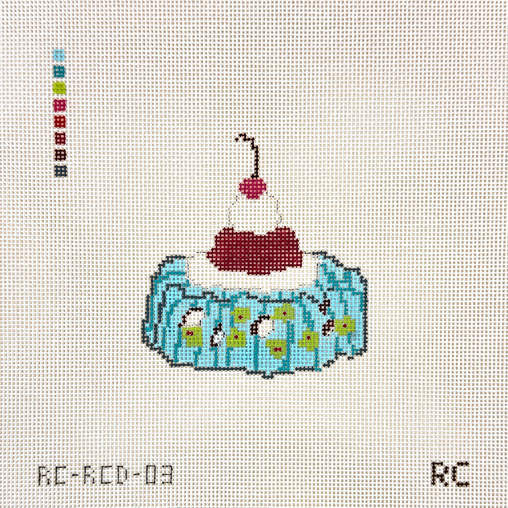 This is a needlepoint canvas from RenniCo. It features a painting of a Jello mold full of an eclectic mix of foods and flavors.