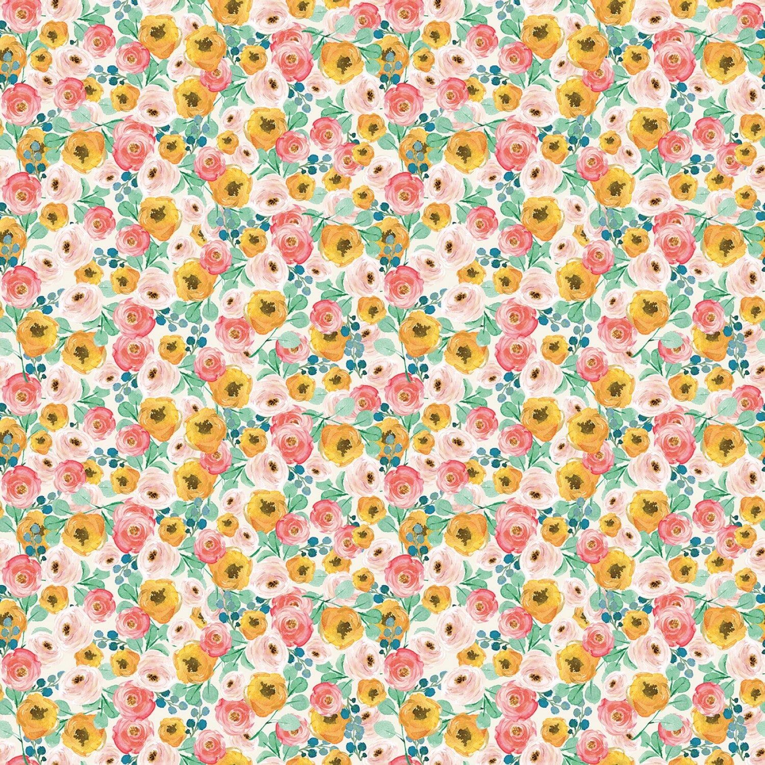 This cotton fabric from Riley Blake Designs features a pretty floral on a cream background.