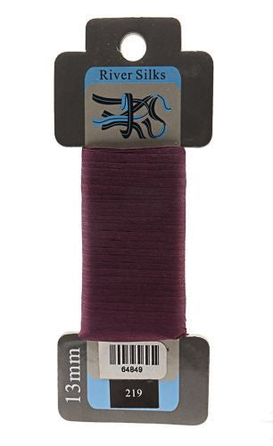 This is 13mm Ribbon from River Silks in color 219 Eggplant. Perfect for silk ribbon embroidery, on fabric or on canvas. Excellent for adding ruffles and dimensional flowers!