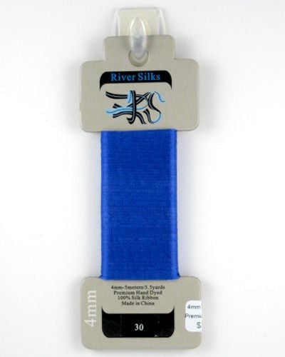 This is 4mm Ribbon from River Silks in color 030 Blue Iris. Perfect for silk ribbon embroidery, on fabric or on canvas. Excellent for adding ruffles and dimensional flowers!