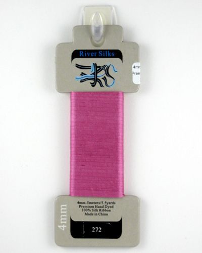 This is 4mm Ribbon from River Silks in color 272 Red Violet. Perfect for silk ribbon embroidery, on fabric or on canvas. Excellent for adding ruffles and dimensional flowers!