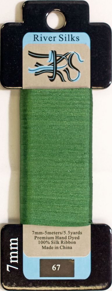 This is 7mm Ribbon from River Silks in color 067 Comfrey. Perfect for silk ribbon embroidery, on fabric or on canvas. Excellent for adding ruffles and dimensional flowers!
