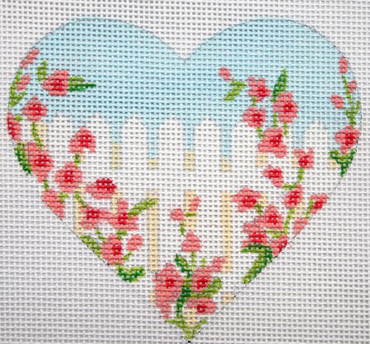 Kate Dickerson Needlepoint Collections Rose Picket Fence Mini Heart Needlepoint Canvas