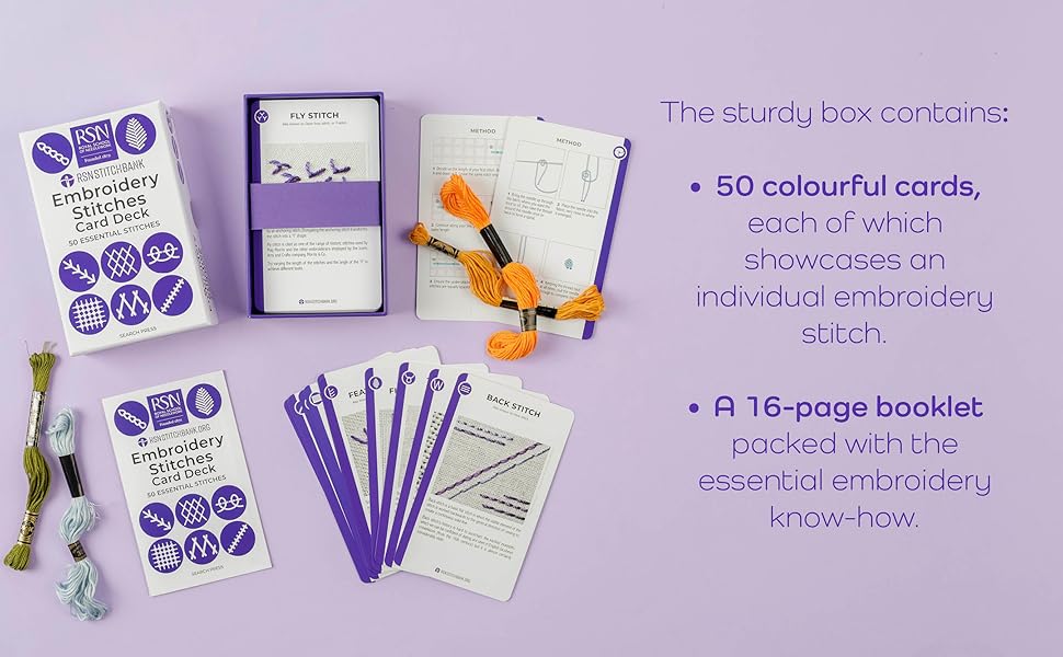 Whether you're a seasoned embroiderer seeking fresh ideas or a beginner eager to expand your repertoire, this versatile card deck is the perfect gift to guide and inspire you. The sturdy box contains: