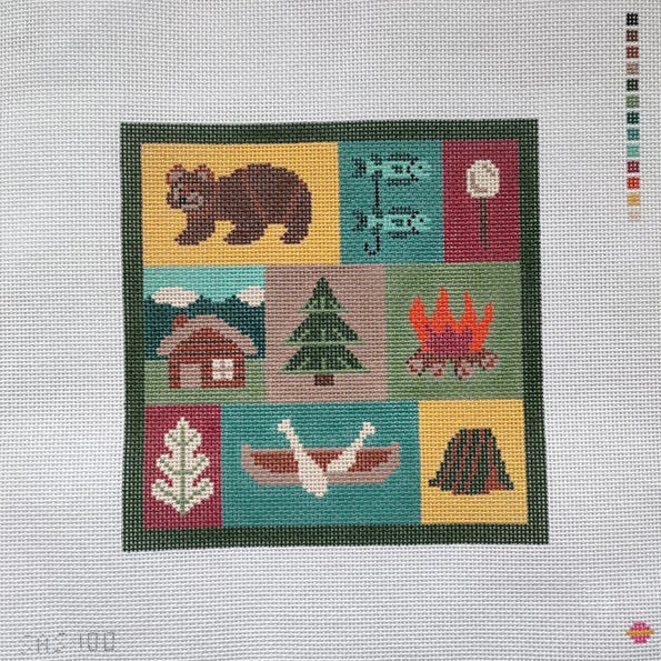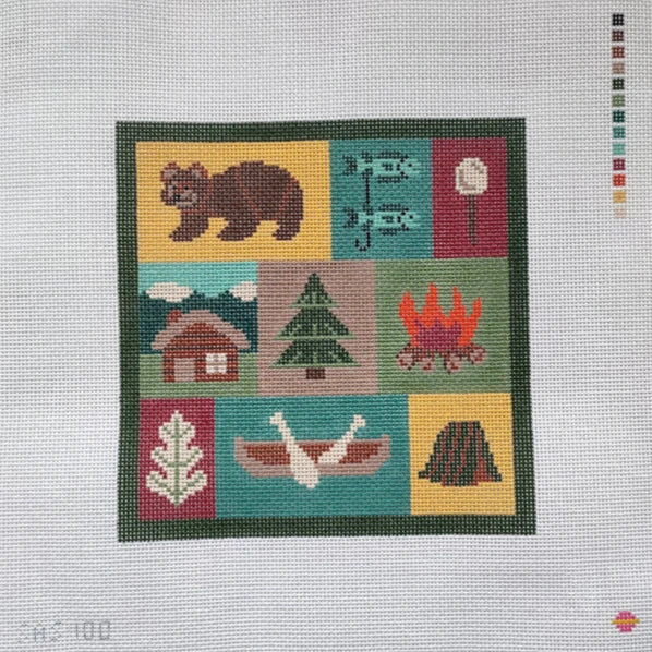 This hand painted needlepoint canvas from Saturnalia Stitching features a variety of panes depicting different fall traditions.