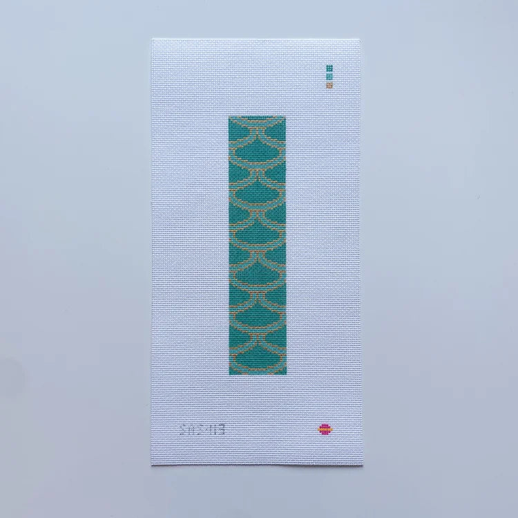This is a handpainted needlepoint canvas from Saturnalia Stitching. It features a painting with a wavey pattern. This canvas is intended to be finished as a key fob or a bookmark.